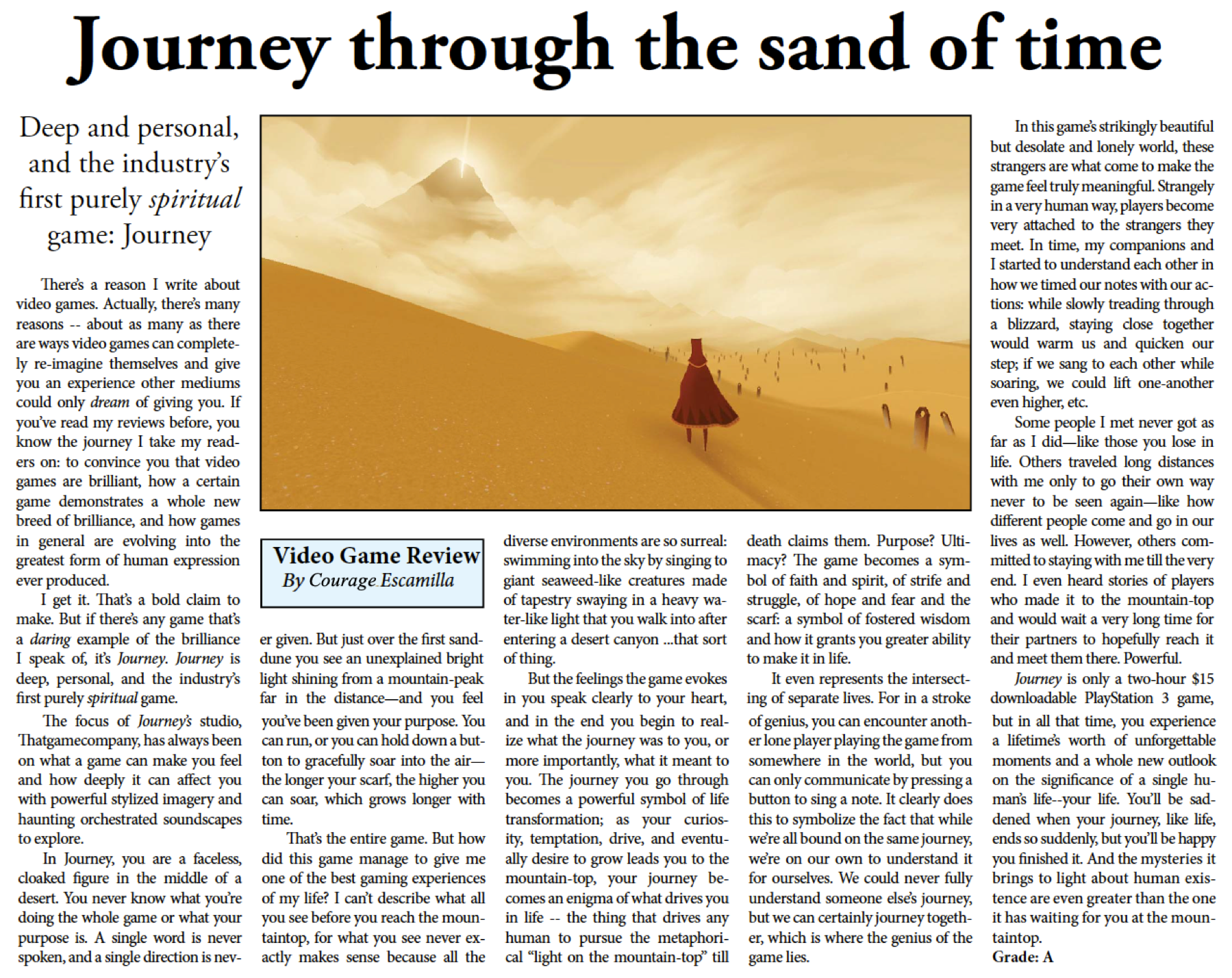 Journey is only a two hour game, but within those two hours you experience a lifetime’s worth of memories that can change how you see the significance of your own life, and every moment in it.